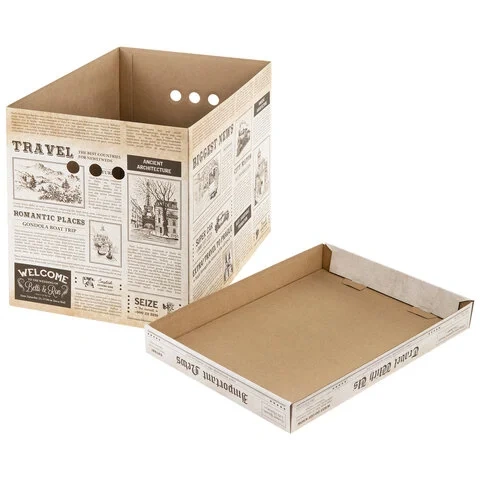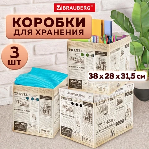 Короб для хранения из микрогофрокартона 380х280х315 мм, КОМПЛЕКТ 3 ШТ., BRAUBERG HOME 'Газета', 2718