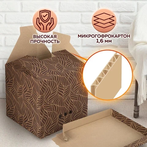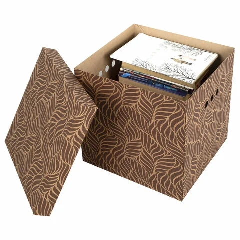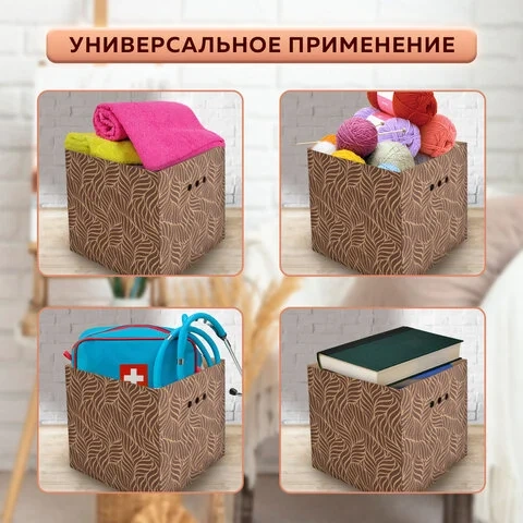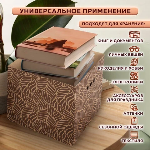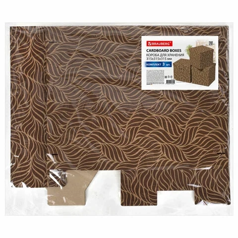 Короб для хранения из плотного микрогофрокартона 315х315х315 мм, КОМПЛЕКТ 3 шт., BRAUBERG HOME 'Узор