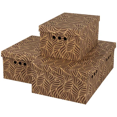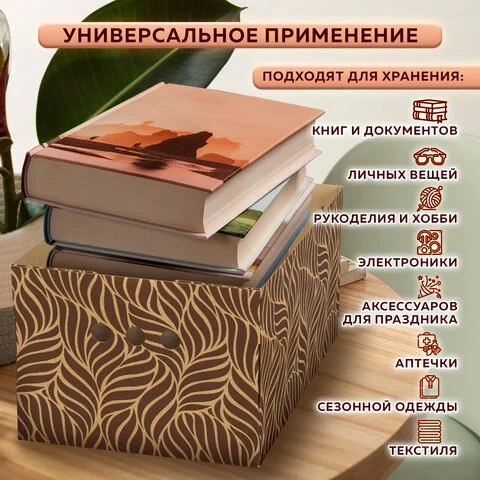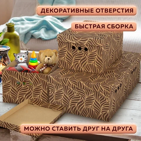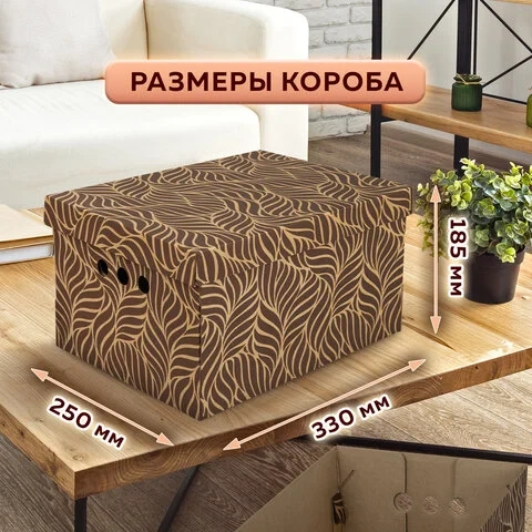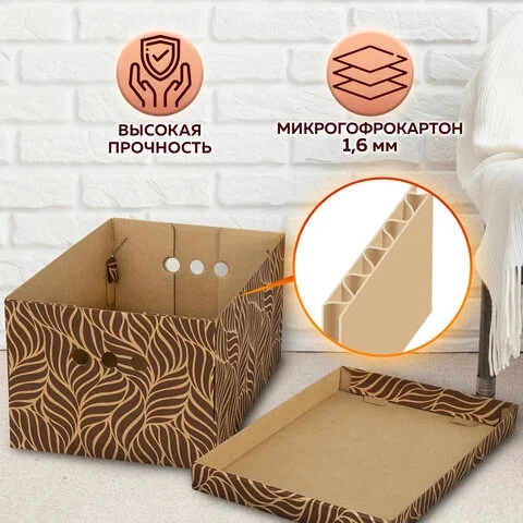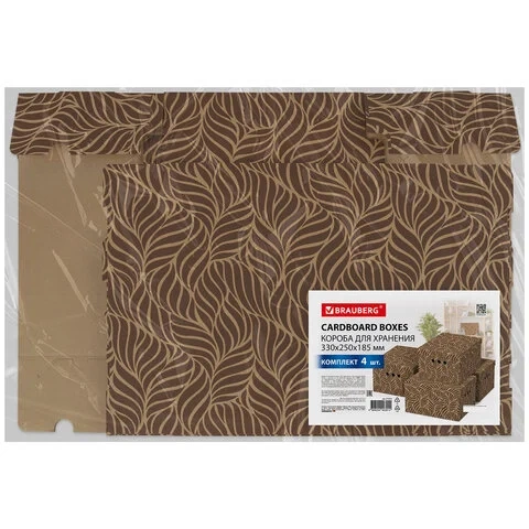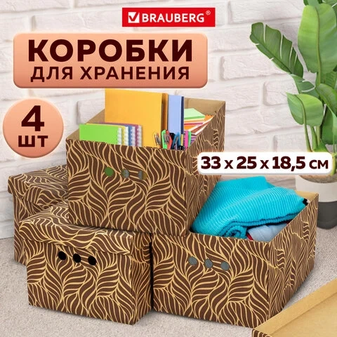 Короб для хранения из плотного микрогофрокартона 330х250х185 мм, КОМПЛЕКТ 4 шт., BRAUBERG HOME 'Узор