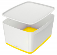 Модульная система хранения Leitz MyBox WOW придаст неповторимый стиль Вашему дому или офису. Прочный короб для хранения изготовлен из высококачественного материала с глянцевой отделкой в эффектной двухцветной цветовой гамме. Для быстрой, легкой и стильной организации хранения документов формата А4, журналов, различных мелочей и продуктов питания. Модульная система позволяет создавать оптимальные решения для хранения. Отлично дополнит ассортимент продуктов из коллекции Leitz WOW в двухцветном дизайне. Стильный двухцветный короб для быстрой и удобной организации и хранения. В сочетании с малым лотком для хранения или большим и малым лотком-органайзером легко создать оптимальное решение для хранения. Изготовлен из прочного, устойчивого к царапинам и водонепроницаемого АБС-пластика для привлекательного внешнего вида. Подходит для хранения пищевых продуктов. Не содержит бис-фенол А.. Экономит место: большой короб и два малых короба, поставленные на него сверху, легко войдут на стандартную полку. Защелкивающаяся крышка обеспечивает надежное закрытие и в то же время открывается без лишних усилий. Когда короба не используются, их можно аккуратно сложить друг в друга для экономии места. Удобно мыть благодаря закругленным углам