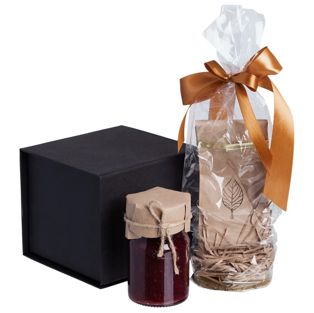 Изготовлена из переплетного картона 1,5 мм, кашированного гладкой дизайнерской бумагой Efalin. Для нанесения логотипа методом шелкографии на темные коробки рекомендуем использовать белый, золотистый и серебристый цвета во избежание проявления оттенка основы. Цвет - черный. Размер: 13,5х12,5х11,5 см, внутренние размеры 11,8х11,8х11 см. Материал: переплетный картон. Возможные виды нанесения: Наклейка; Шелкография (1 цвет)