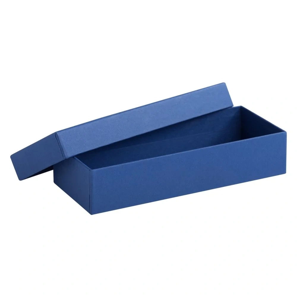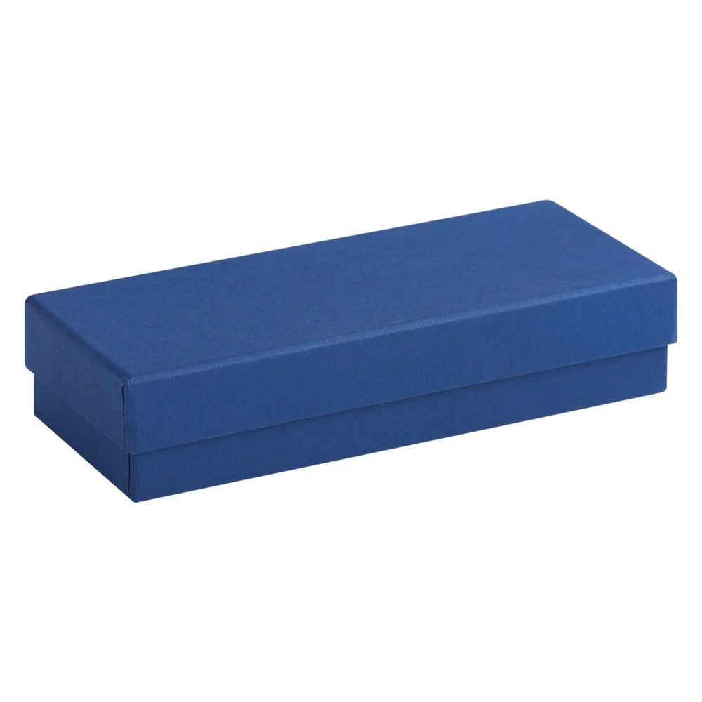Коробка изготовлена из переплетного картона, кашированного дизайнерской бумагой Colorplan. Для нанесения логотипа методом шелкографии на темные коробки рекомендуем использовать белый, золотистый и серебристый цвета во избежание проявления оттенка основы. Цвет - синий. Размер: 17,2х7,2х4 см; внутренний размер 16,3х6,4х3,3 см. Материал: переплетный картон. Возможные виды нанесения: Наклейка; Шелкография (1 цвет)