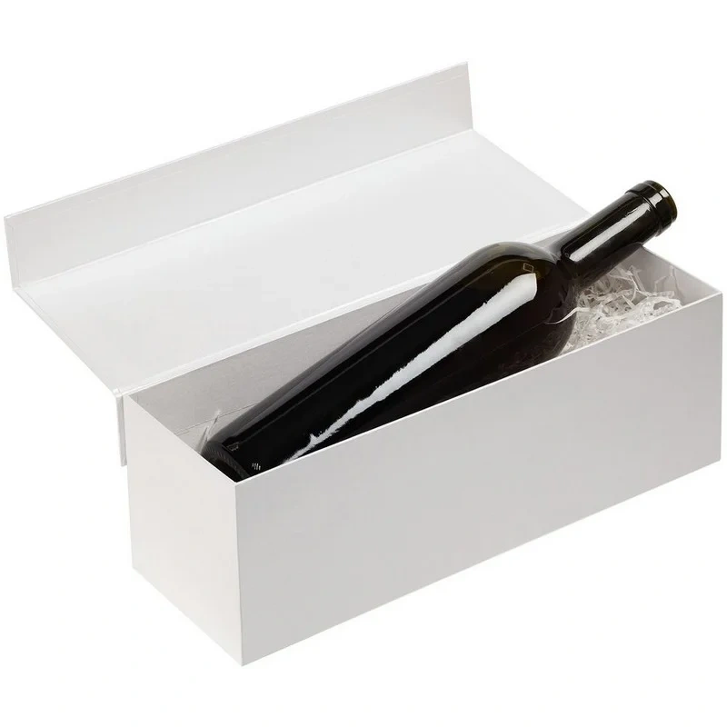 Коробка под бутылку Red Jacket — прекрасный бюджетный вариант упаковки подарочного алкоголя.Наполнитель приобретается отдельно.Коробка выполнена из переплетного картона, кашированного дизайнерской бумагой Majestic, с крышкой на магните. Материал: переплетный картон Размер: 33,3х10,5х10,2 см, внутренние размеры: 32,7х9,7х9,8 см Цвет: белый