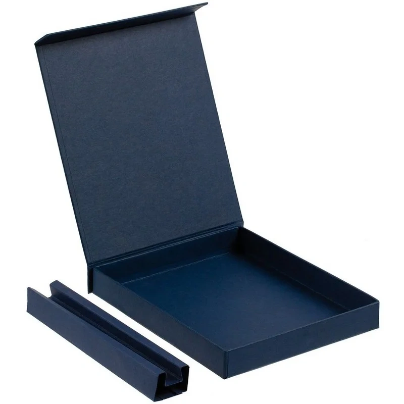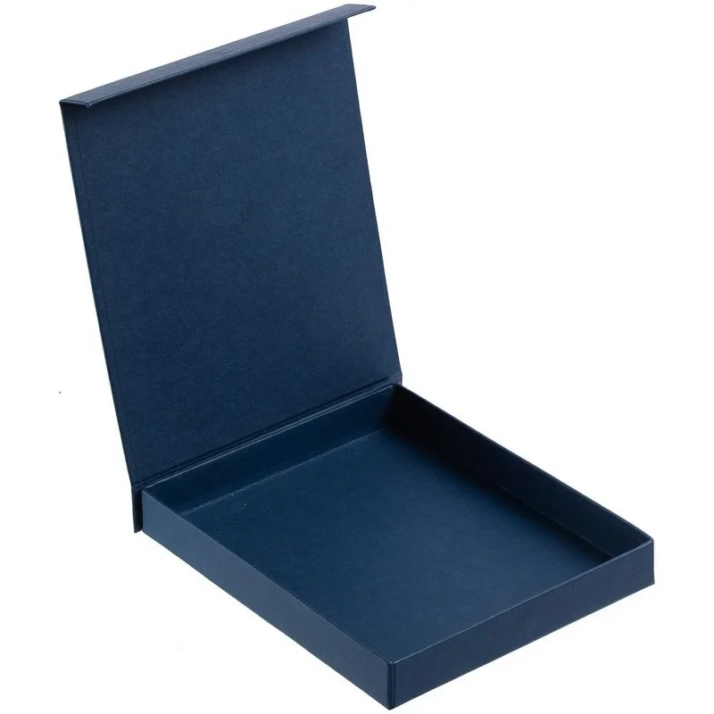 Коробка выполнена из переплетного картона, кашированного гладкой дизайнерской бумагой Efalin, с крышкой на магните.Внутренний размер коробки без съемного ложемента под ручку: 13,5х16,5х1,9 смВнутренний размер коробки с ложементом под ручку: 11х16,5х1,9 см.Размер ложемента под ручку: 2,6х16,4х1,9 см. Материал: переплетный картон Размер: 14,2х17х2,1 см Цвет: синий
