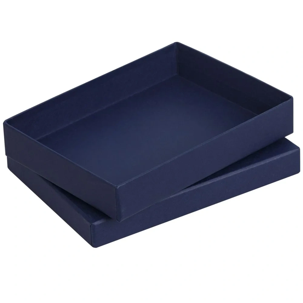 Коробка сделана из переплетного картона, кашированного дизайнерской бумагой Malmero Bleu. Для нанесения логотипа методом шелкографии на темные коробки рекомендуем использовать белый, золотистый и серебристый цвета во избежание проявления оттенка основы. Цвет - синий. Размер: 17х13х2,9 см. Материал: переплетный картон. Возможные виды нанесения: Наклейка; Шелкография (1 цвет)