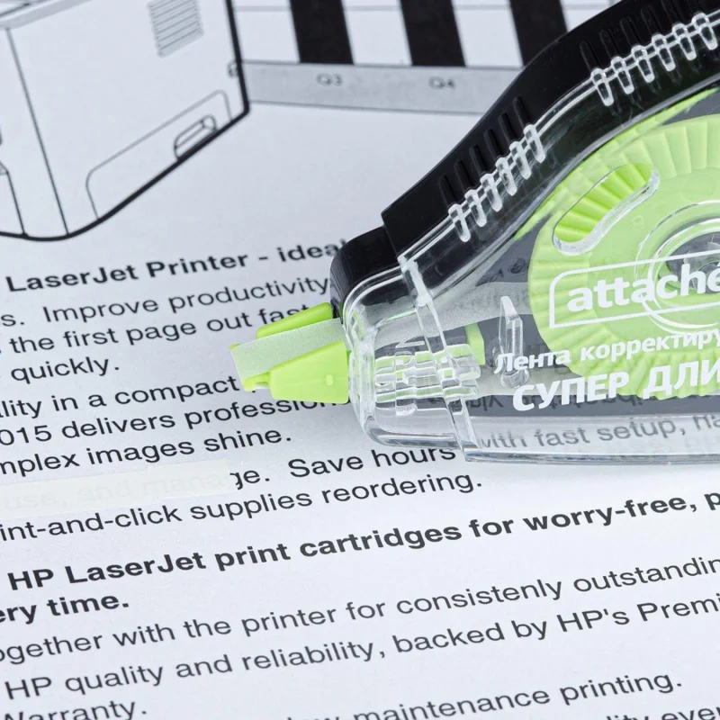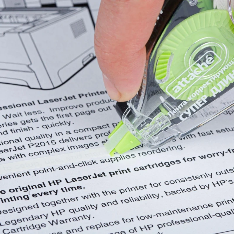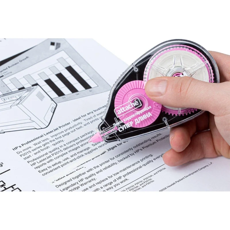 Корректирующая лента Attache предназначена для исправления строчного текста на любом типе бумаги. Не требует длительного высыхания, можно сразу писать по исправленному тексту. Съемный колпачок защищает от высыхания рабочий узел. Автоматическое подкручивание. Лента не оставляет следов и черных полос на документе при ксерокопировании или отправке по факсу. Общая длина корректирующей ленты — 20 м, ширина — 5 мм. Размер корпуса: 114×58×19 мм. Упаковка — блистер.