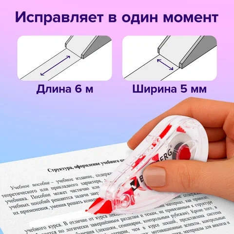 Учебный процесс и работа, связанная с оформлением документов, не могут обойтись без ошибок и опечаток. С помощью корректирующей ленты BRAUBERG 'Red Power', которую можно приобрести в нашем интернет-магазине, станет легче исправлять недочеты.