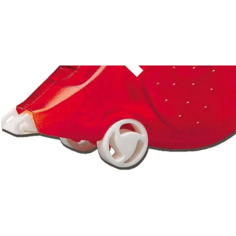 Корректирующая лента на колесиках предназначена для исправления строчного текста на любом типе бумаги. Запатентованная система «колесико» позволяет установить корпус, так чтобы лента легко безотрывно наносилась на бумагу. Удобна в использовании левой и правой рукой. Не требует длительного высыхания, можно сразу писать по исправленному тексту. Общая длина корректирующей ленты 8 м, ширина — 4.2 мм. Автоматическая подкрутка ленты.