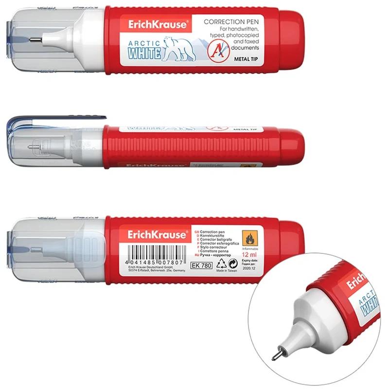 Корректирующая ручка Erich Krause Arctic White 12мл, 780