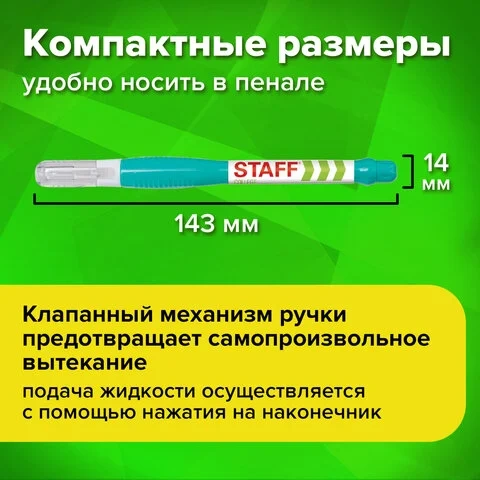 Ручка-корректор STAFF легко и без усилий поможет Вам исправить ошибки и недочеты в документах. Приобрести товар можно на нашем сайте!