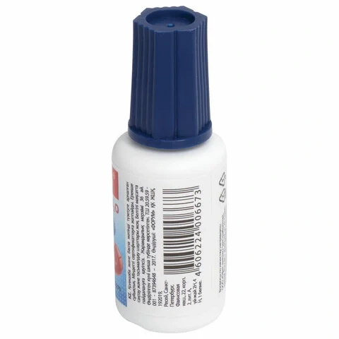 Корректирующая жидкость на водной основе быстро высыхает на бумаге. Морозоустойчивая. Экономичный объем флакона - 20 мл, которого хватит на продолжительное время. Удобная кисточка обеспечивает легкое нанесение корректуры.