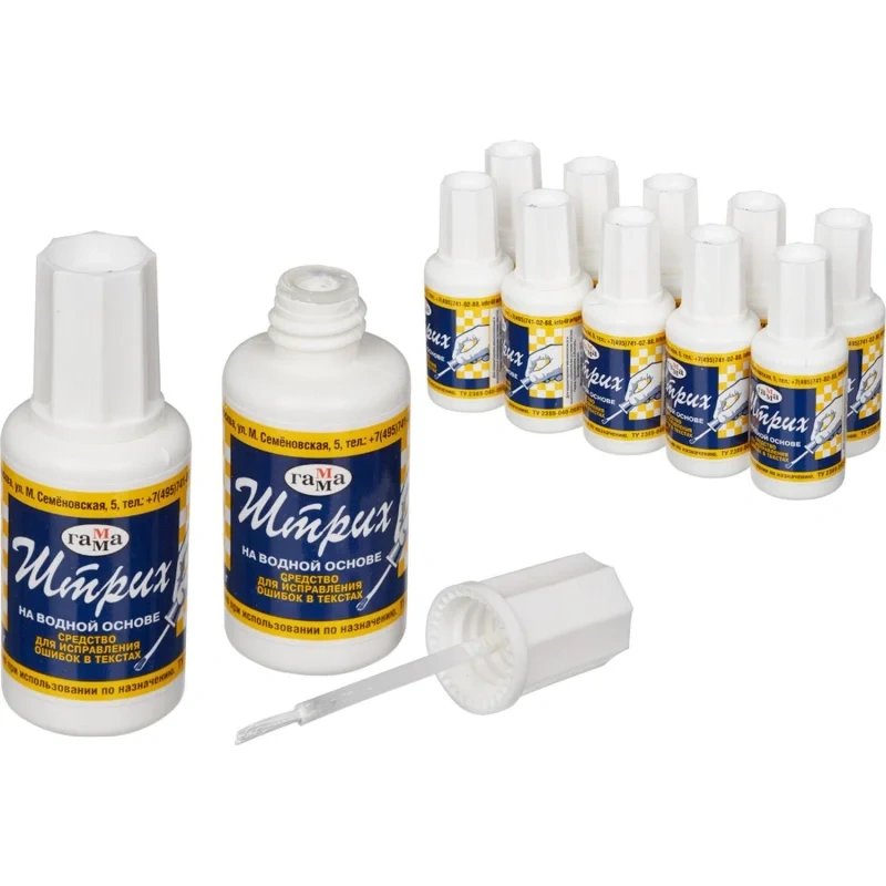 Корректирующая жидкость Гамма Штрих 20мл, с кисточкой, на водной основе