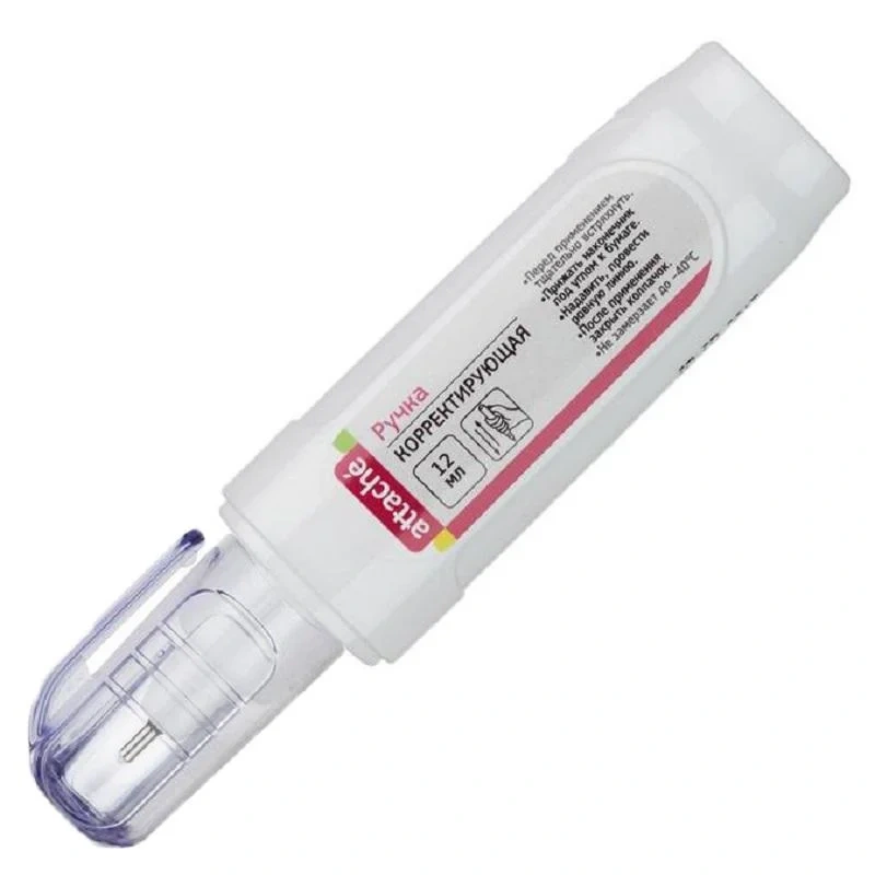 Применяется для точечных и мелких исправлений. Данный вид корректировки особенно удобен, если Вам нужно исправить небольшой объем текста или даже самую маленькую помарку. Идеально подходит для студентов и старших школьников. Подходит для любого типа бумаги и чернил.Используются для исправления рукописного и машинописного текста. Быстросохнущая, морозоустойчивая. Металлический шариковый узел.Объем-12 мл. Толщина корректирующей линии: 1.4мм. Перед употреблением хорошо взболтать.