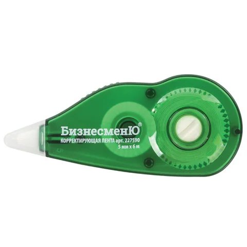 Корректирующая лента БИЗНЕСМЕНЮ 5 мм х 6 м, корпус зеленый, механизм перемотки, блистер, 227590