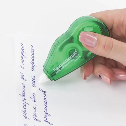 Корректирующая лента позволяет максимально быстро корректировать документы: она не требует времени на высыхание, можно сразу писать по исправленному. Плотное и надежное покрытие легко и без усилий ложится на бумагу, не крошится при высыхании. Корректировки не заметны на ксерокопиях докуметов. Общая длина корректирующей ленты — 6 м, ширина — 5 мм. Оснащена механизмом подкручивания. Поставляется в блистерной упаковке.
