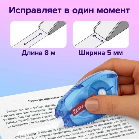 Исправление документов корректирующей лентой BRAUBERG - это легко и быстро! Экономьте свое рабочее время - заказывайте товары на нашем интернет-сайте!