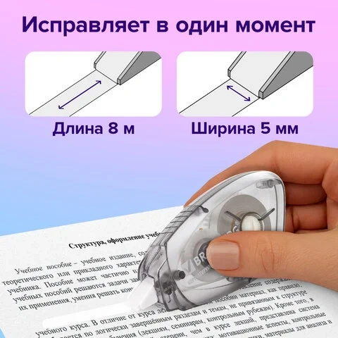 Учебный процесс и работа в офисе, связанная с оформлением документов, зачастую сопровождается ошибками. Корректирующие ленты BRAUBERG 'BLACK&WHITE' быстро и аккуратно исправят недочеты. Экономьте свое рабочее время - заказывайте товары на нашем интернет-сайте!