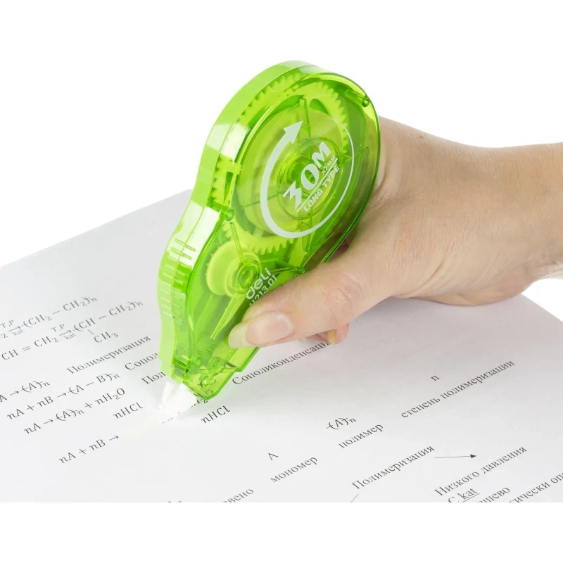 Корректирующая лента Deli 30 м х 5 мм. Превосходное покрытие корректируемой поверхности. После нанесения ленты можно сразу корректировать текст. Лента на основе пленки, устойчива к разрыву. Механизм экстрамягкой подачи ленты. Эргономичный дизайн, удобно держать. Внимание! Товар поставляется в нескольких вариантах цвета (без возможности выбора).
