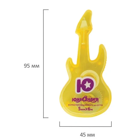 Корректирующая лента ЮНЛАНДИЯ 'Гитара' 5 мм х 6 м, корпус желтый, блистер, 227798