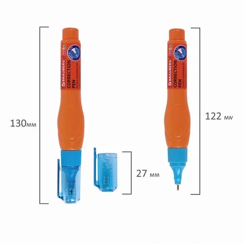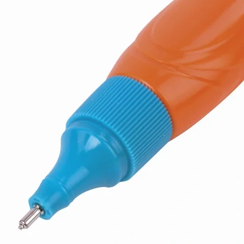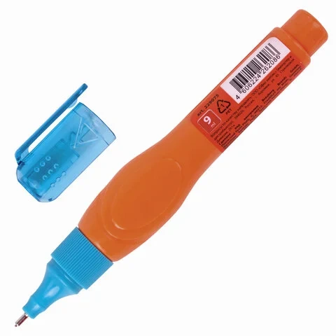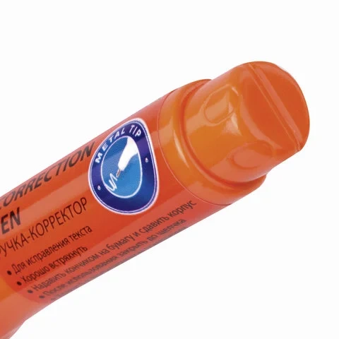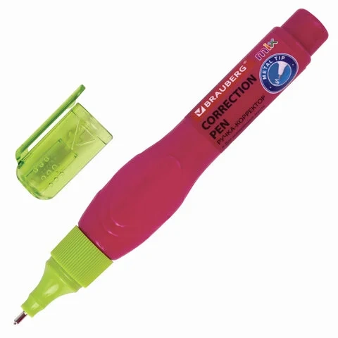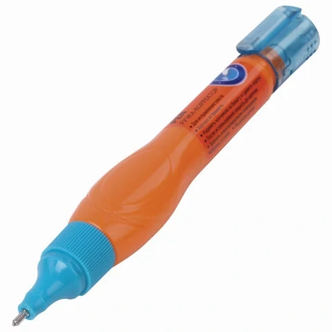 - Корректирующая ручка оснащена клапанным механизмом, и подача жидкости осуществляется с помощью нажатия на наконечник ручки.