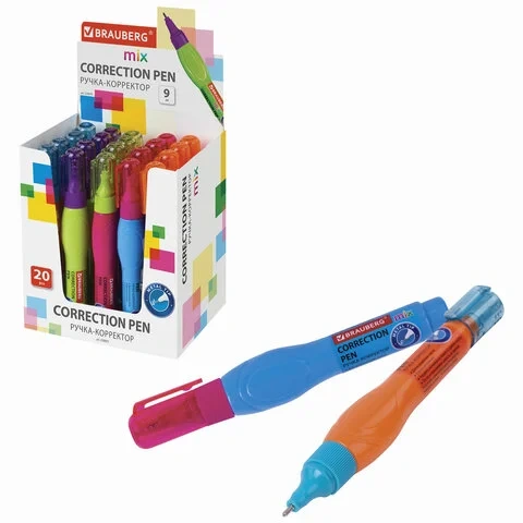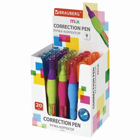 Корректирующая ручка Brauberg Mix 9мл, корпус ассорти