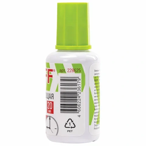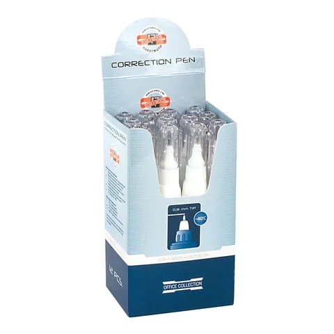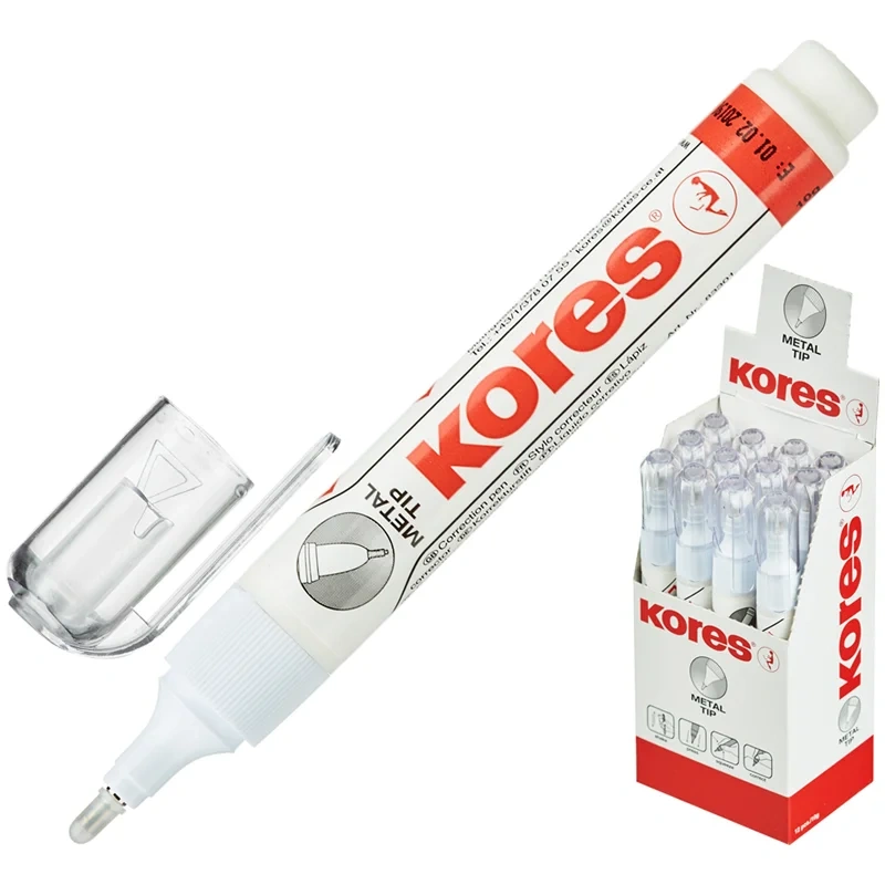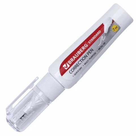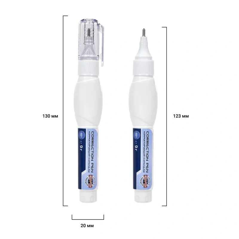 - Корректирующая ручка оснащена клапанным механизмом, и подача жидкости осуществляется с помощью нажатия на наконечник ручки.