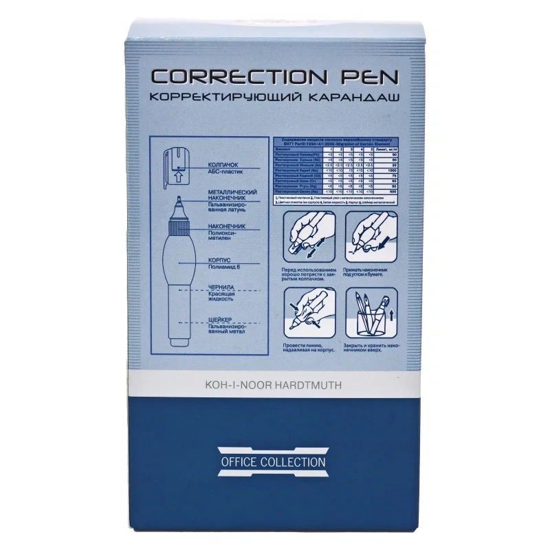 - Корректирующую ручку перед использованием ОБЯЗАТЕЛЬНО необходимо встряхнуть (в корпусе ручки находится металлический шарик).