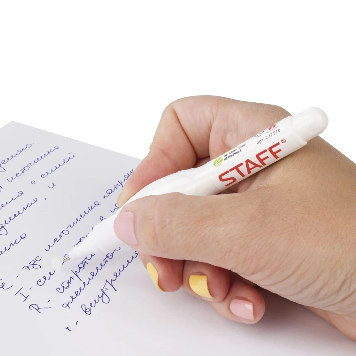 Ручка-корректор STAFF легко и без усилий поможет Вам исправить ошибки и недочеты в документах. Приобрести товар можно на нашем сайте!