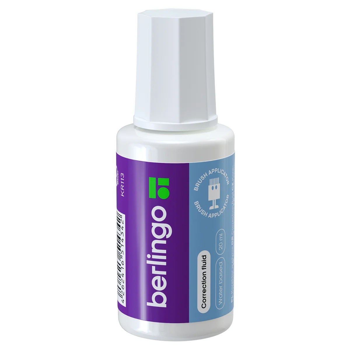 Корректирующая жидкость Berlingo подходит для корректировки всех типов документов. Объём – 20 мл. Легко наносится на бумагу, даёт плотное непрозрачное покрытие. Имеет безопасный состав на водной основе без резкого химического запаха. Упаковка – картонный дисплей бокс по 24 штуки.