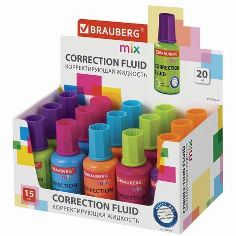 Учебный процесс и работа, связанная с оформлением документов, не могут обойтись без ошибок и опечаток. В новой яркой серии BRAUBERG MIX представлена корректирующая жидкость, с помощью которой вы легко любой недочет в документах. Впустите энергию цвета в ваш офис - заказывайте корректирующую жидкость BRAUBERG MIX на нашем сайте!