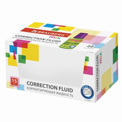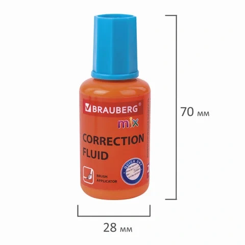 Корректирующая жидкость Brauberg Mix 20мл, быстросохнущая, с кисточкой