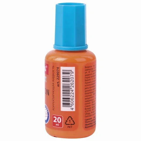 Быстросохнущий корректор на спиртовой основе является морозоустойчивым и быстро высыхает на бумаге. Флакона объемом 20 мл хватит на продолжительное время. Кисточка позволяет легко наносить жидкость.