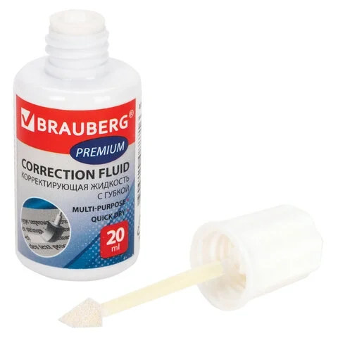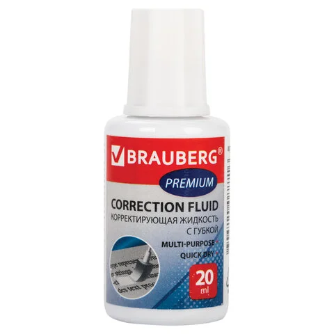 Корректирующая жидкость Brauberg Premium 20мл, с губкой, быстросохнущая