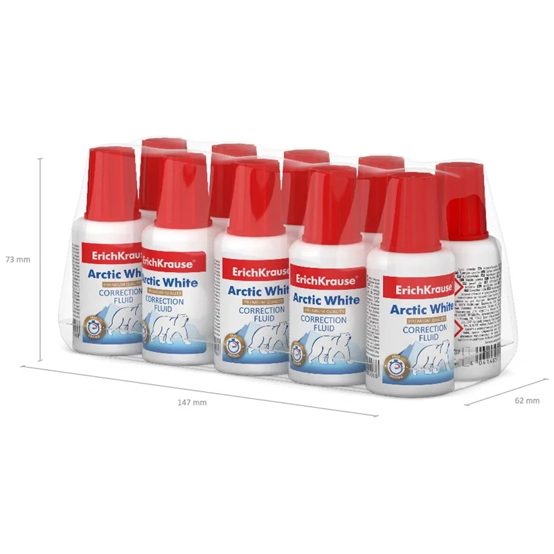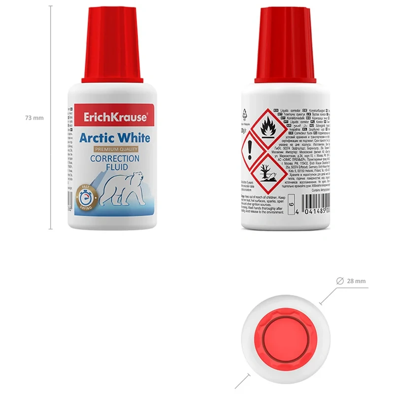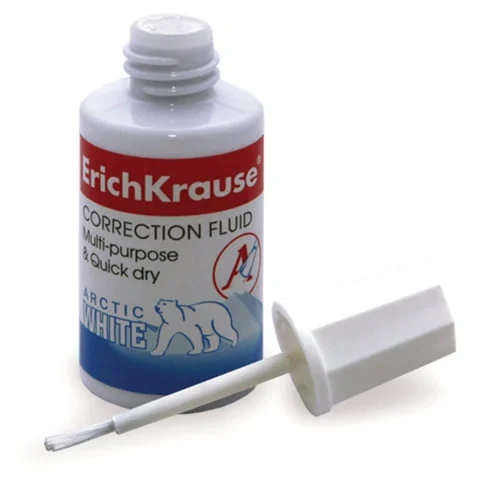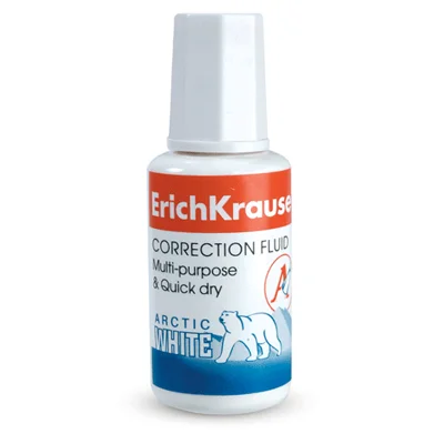 Корректирующая жидкость Erich Krause Arctic White 20мл, с кисточкой, быстросохнущая