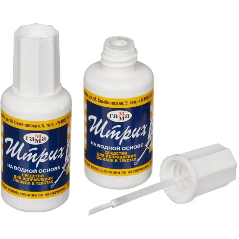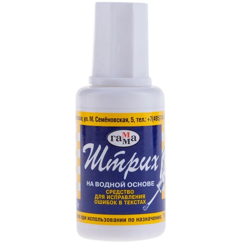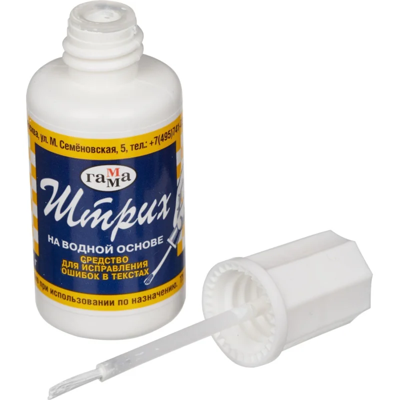 Корректирующая жидкость Гамма Штрих 20мл, с кисточкой, на водной основе
