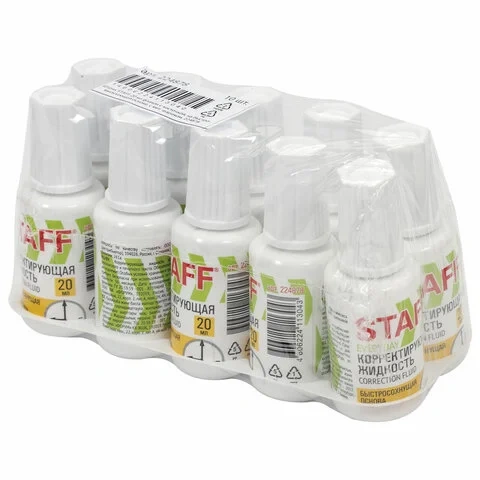 Корректирующая жидкость Staff 20мл, с кисточкой, быстросохнущая