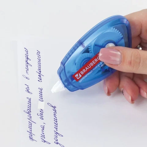 Корректирующая лента BRAUBERG 5 мм х 8 м, корпус синий, механизм перемотки, блистер, 227801