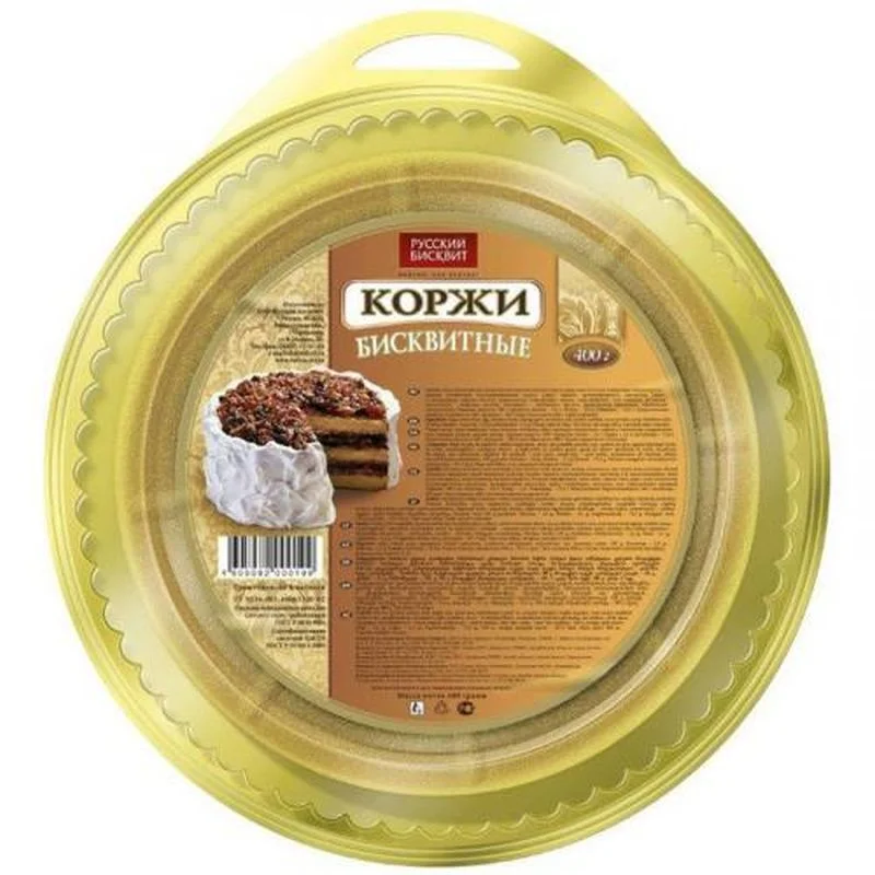 Готовые светлые коржи 'Русский бисквит' из бисквитного теста позволят значительно упростить и ускорить процесс приготовления торта. Они имеют в меру сладкий вкус и приятный аромат. Коржи нежные даже без дополнительной пропитки, аккуратно режутся и очень удобны в использовании. Без труда отсоединяются друг от друга. Приготовлены из качественных ингредиентов и подходят для тортов с начинками любой консистенции. Состав: мука пшеничная для кондитерских изделий высшего сорта, сахар, яйцепродукты, крахмал пшеничный, влагоудерживающие агенты (сироп сорбита, пропиленгликоль), эмульгатор (моно и диглицериды жирных кислот), вода питьевая очищенная, разрыхлители (пирофосфат натрия, сода пищевая), соль пищевая, кислота лимонная, ароматизатор ванильный, идентичный натуральному.