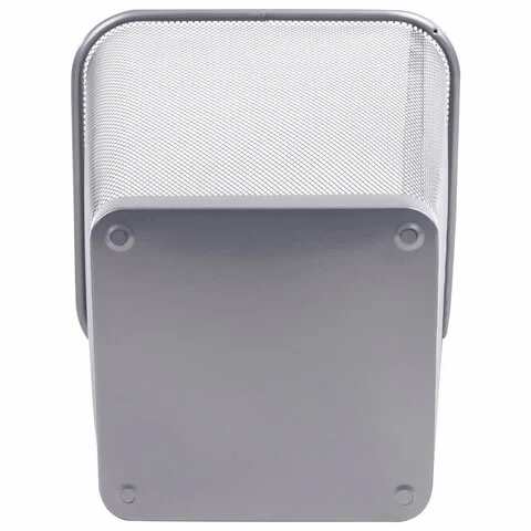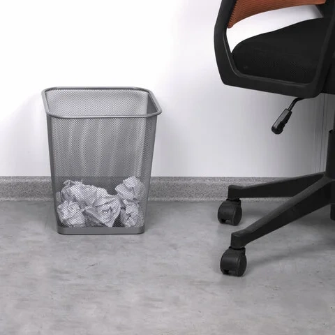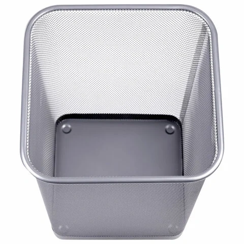 Изготовлена из металлической сетки серебристого цвета. Объем – 17 л. Легкость и компактность корзины позволяют перемещать ее с одного места на другое. Квадратная форма позволяет удобно разместить корзину под рабочим столом.
