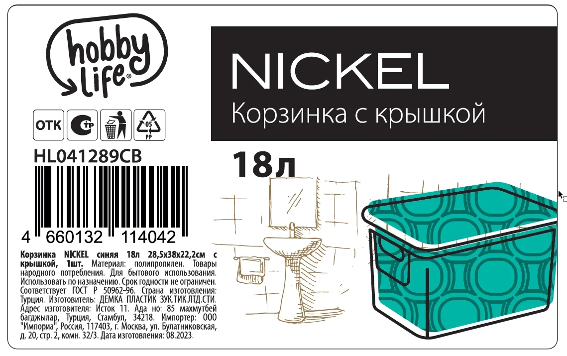 Корзина для хранения Hobby Life Nickel с крышкой синяя 28.5 x 38 x 22.2см, 18л