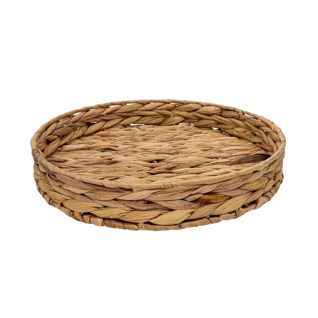 Сплетённый из водного гиацинта круглый поднос из коллекции Золотистый колос от Natural House станет отличным функциональным решением для сервировки стола, а также открытого хранения вещей и разных мелочей, которые обычно некуда сложить. Прекрасное дополнение интерьера в стиле бохо и эко-бохо, сканди, прованс или фьюжн. 100% ручная работа. При изготовлении подноса используются только натуральные материалы, прошедшие антибактериальную обработку.