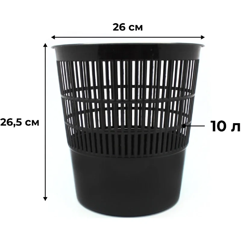 Корзина для мусора и бумаг 10 л пластик сетчатая черная (26.5×26×26 см).