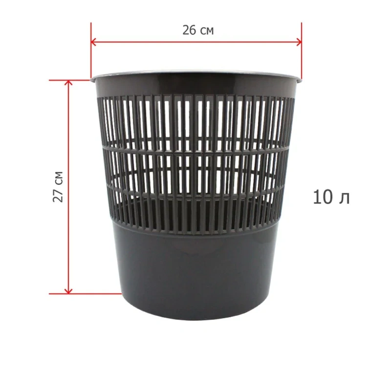 Корзина для мусора и бумаг 10 л пластик сетчатая серая (27×26×26 см).
