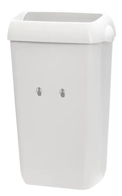 Большая корзина для мусора, которую в зависимости от размеров помещения, можно установить на пол или прикрепить к стене. Съемная крышка обеспечивает надежную фиксацию мешков внутри корзины, а также простоту и скорость обслуживания. Корзина идеально подходит для общественных туалетных комнат, профессиональных кухонь, столовых и обеденных зон.
