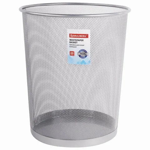 Корзина для мусора Brauberg Germanium 20л, серебристая, сетчатая, 231957