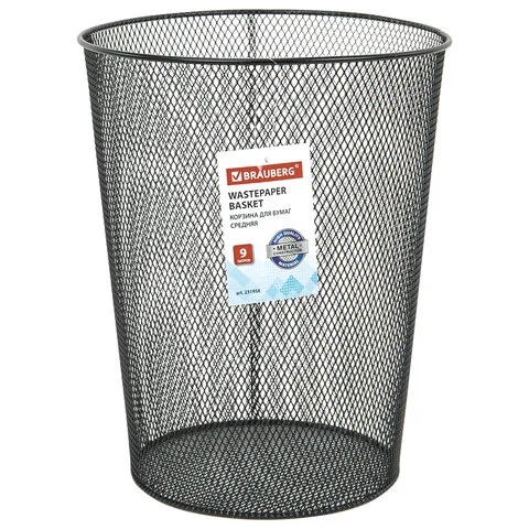 Корзина для мусора Brauberg Germanium 9л, черная, сетчатая, 231958