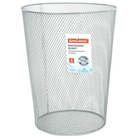 Корзина для мусора Brauberg Germanium 9л, серебристая, сетчатая, 231959