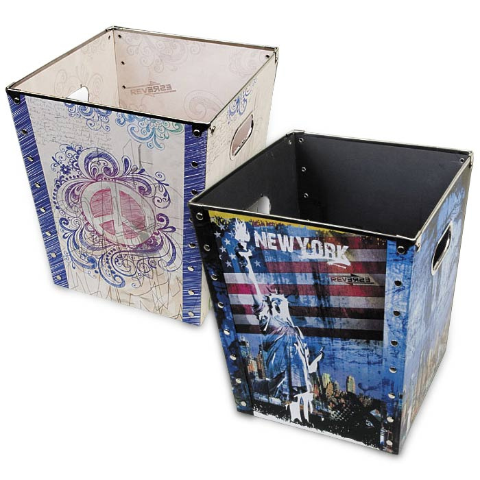 Корзина для бумаг в различных цветовых вариантах исполнения.