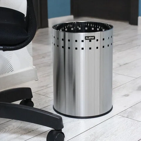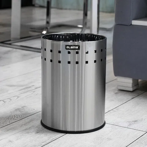 Корзина для мусора Laima Bionic 12л, матовый металлик, перфорированная, несгораемая, 232268