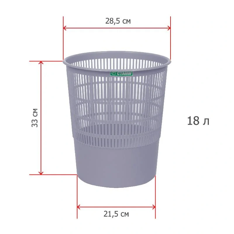 Корзина для мусора и бумаг Стамм 18 л пластик сетчатая серая (33×29.5×29.5 см).